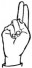 На ћирилици написано ТЕОДОРА ДАНГУБИЋ састоји се из 15 слова [?]. Исписано ћириличном једноручном азбуком за глувонеме: